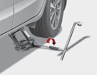 Then position the tool as shown in the drawing and tighten the wheel nuts. Be sure the socket is seated completely over the nut. Do not stand on the tool handle or use an extension pipe over the tool handle. Go around the wheel tightening every other nut until they are all tight. Then doublecheck each nut for tightness. After changing wheels, have the system checked by a professional workshop.