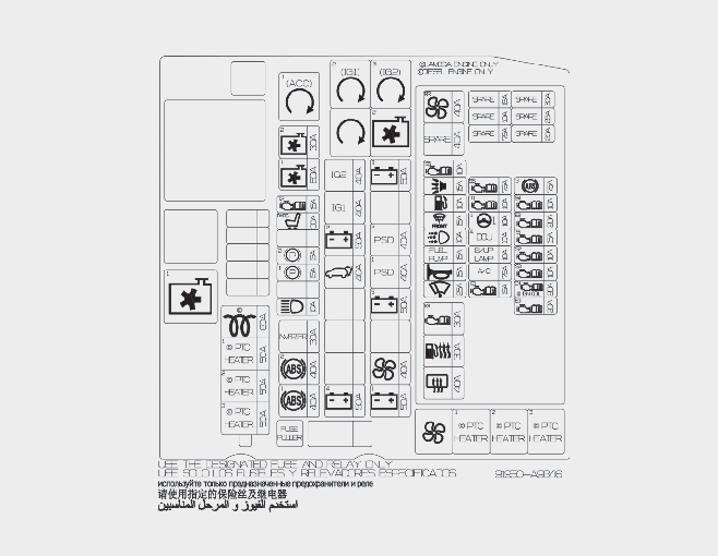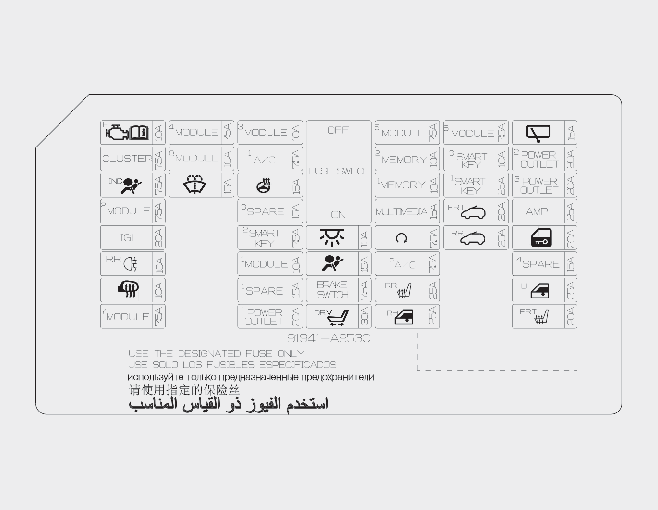 Inside the fuse/relay panel covers, you can find the fuse/relay label describing fuse/relay name and capacity.
