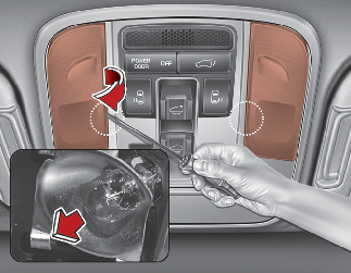 Prior to working on the Interior lamps, ensure that the "OFF" button is depressed to avoid burning your fingers or receiving an electric shock.