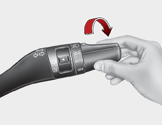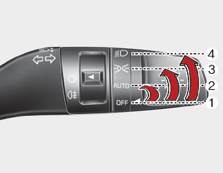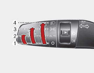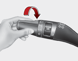 To operate the lights, turn the knob at the end of the control lever to one of the following positions: