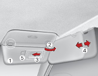 To use the vanity mirror, pull down the visor and slide the mirror cover (3).