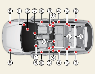O SRSCM monitoriza continuamente todos os componentes com o interruptor da ignição ou o botão ENGINE START/STOP (Ligar/desligar o motor) ligados, de modo a determinar se o impacto de uma colisão frontal, quase frontal ou lateral é suficientemente forte para ativar o enchimento do airbag ou o pré-tensor do cinto de segurança.