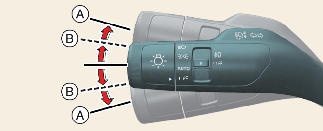 acione ligeiramente a alavanca dos indicadores de mudança de direção e mantenha-a nessa posição (B).
