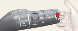 Puxe ligeiramente a alavanca para si, para borrifar líquido de limpeza no para-brisas e ativar o limpa-para-brisas com 1-3 ciclos. Utilize esta função se o para-brisas estiver sujo. O borrifar e a limpeza continuarão até soltar a alavanca.
