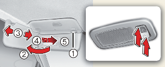 Para usar o espelho de conveniência, puxe a pala para baixo e abra a tampa do espelho (4).