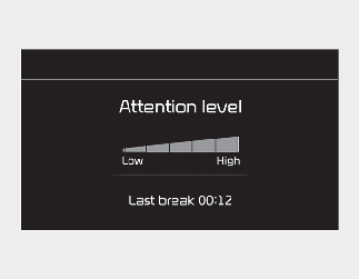 The basic function of Driver Attention Warning is to inform the driver the 'Attention level' and to warn the driver 'Consider taking a break'.