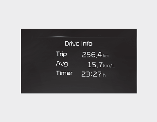 Tripptellermodus viser informasjon knyttet til kjøretøyets kjøreparametere, inkludert drivstofføkonomi, triptellerinformasjon og tidtaker.