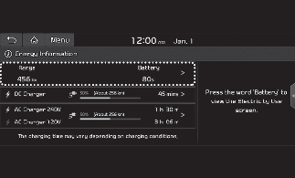 You can check the reachable range, battery power remaining, and expected charging time for each charger type.