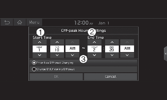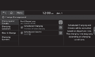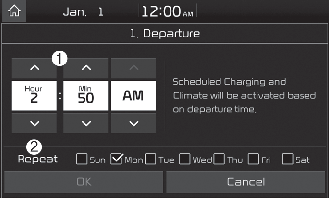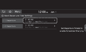 Departure time: Set the time that you wish to start the vehicle after charging the battery.