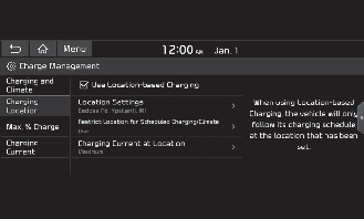 The location-based charging feature allows you to dualize the charging current settings at specific locations.