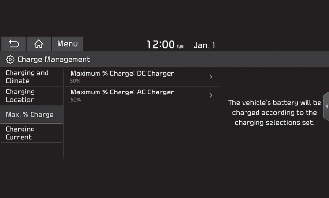 The target battery charge level can be selected when charged with AC charger or DC charger.