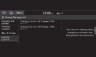 You can adjust the charging current for an AC charger. Select an appropriate charging current for the charger used.
