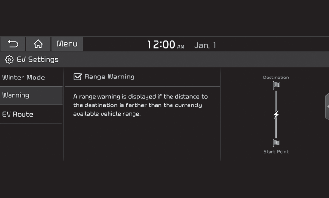 If the destination set in the navigation cannot be reached with the remaining battery, a warning message is displayed.