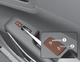 When pressing the right portion (1) for driver side or the upper portion (1) for passenger side of the switch, all vehicle doors will lock.