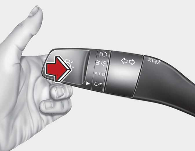 상향 깜빡임: 스위치를 운전자 방향으로 2~3회 정도 당겨 올리십시오.(스위치를 운전자 방향으로 당겼다가(상향) 스위치에서 손을 떼면 자동으로 스위치가 중앙 위치(하향)로 원위치됩니다.)