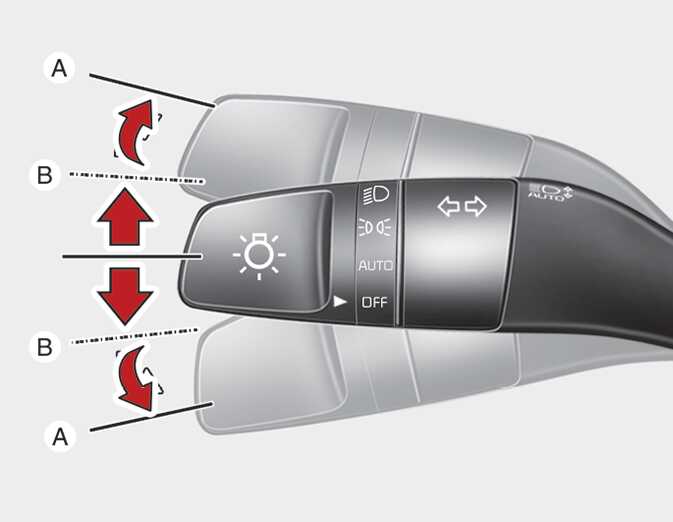 조명 스위치를 위로 올리면 우측 방향 지시등이 켜지고, 아래로 내리면 좌측 방향 지시등이 켜집니다.