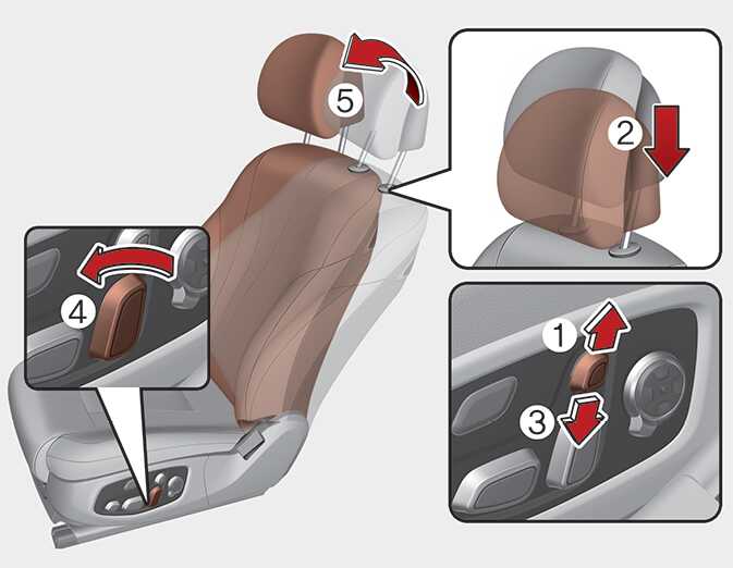 헤드레스트 조절 스위치를 위 아래로(1,3) 3회 작동하여 헤드레스트가 확실히 체결되었는지 확인하십시오.
