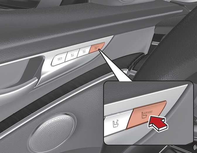 도어에 있는 「SMART」 버튼을 누르거나 인포테인먼트 시스템 화면에서 ‘설정 → 차량 → 편의 → 스마트 자세 제어’ 메뉴를 선택하여 운전자의 신체 정보를 입력하십시오.