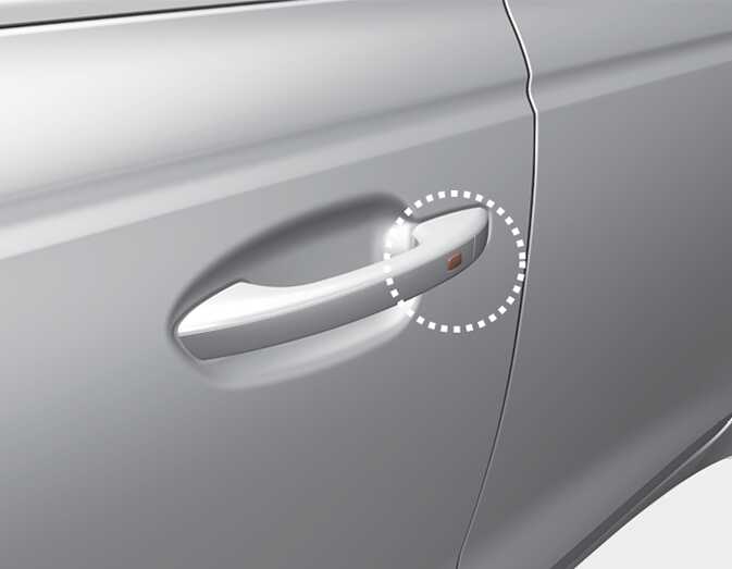 앞좌석 실외 도어 손잡이에 있는 음각 부분으로 된 도어 잠금 센서부를 터치하십시오.