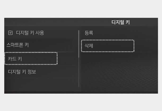 디지털 키(카드) 삭제 시 스마트 키를 소지하여야 합니다.