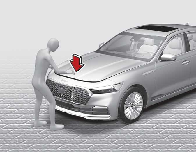엔진 후드를 내린 후 아래로 눌러 닫으십시오.