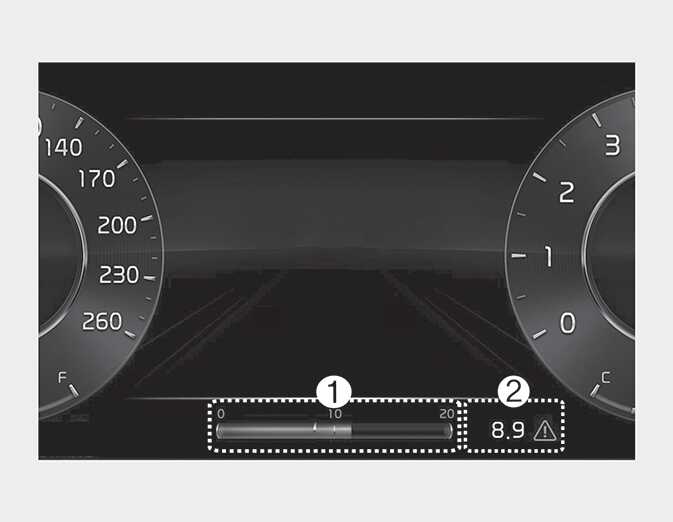 순간연비(1)와 평균연비(2)가 표시됩니다.