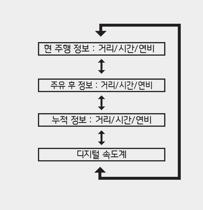주유 후 정보가 표시된 상태에서 「OK」 버튼을 약 1초 이상 누르면 초기화됩니다.