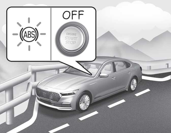 경고등이 꺼지지 않을 때 또는 주행 후 다시 경고등이 켜지는 때는 ABS 장치의 고장이므로 자사 직영 서비스센터 또는 서비스협력사에서 점검 및 정비를 받으십시오.