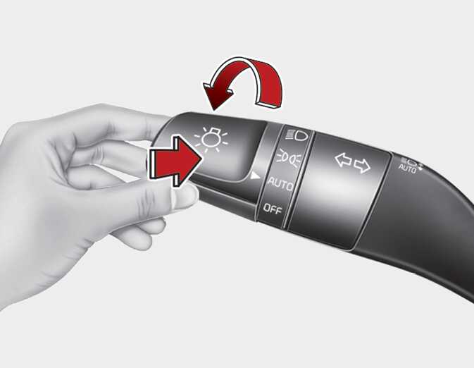 2. 조명 스위치를 계기판 방향으로 밀면 계기판에 하이빔 보조 표시등( )이 켜집니다.