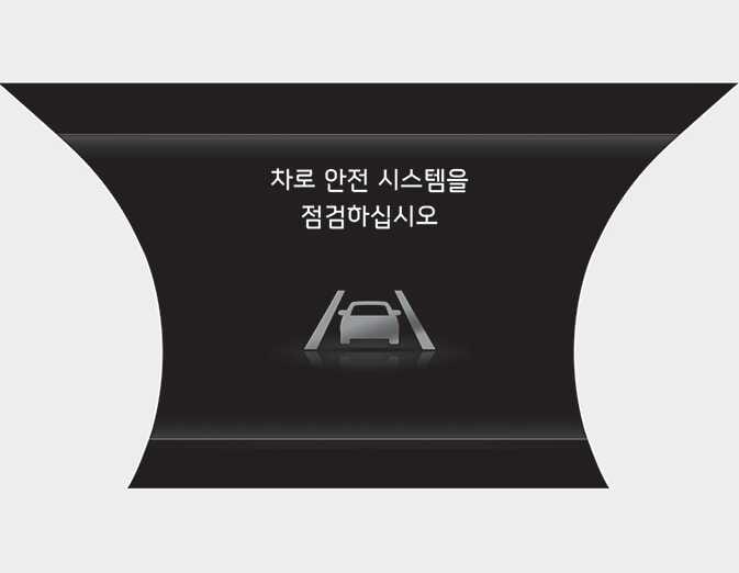 기능 이상 ORJ041230 차로 이탈방지 보조에 이상이 있으면 계기판 등에 경고문이 표시되고 차로 안전 경고등( )이 노란색으로 켜집니다. 자사 직영 서비스센터나 서비스협력사에서 점검을 받으십시오.