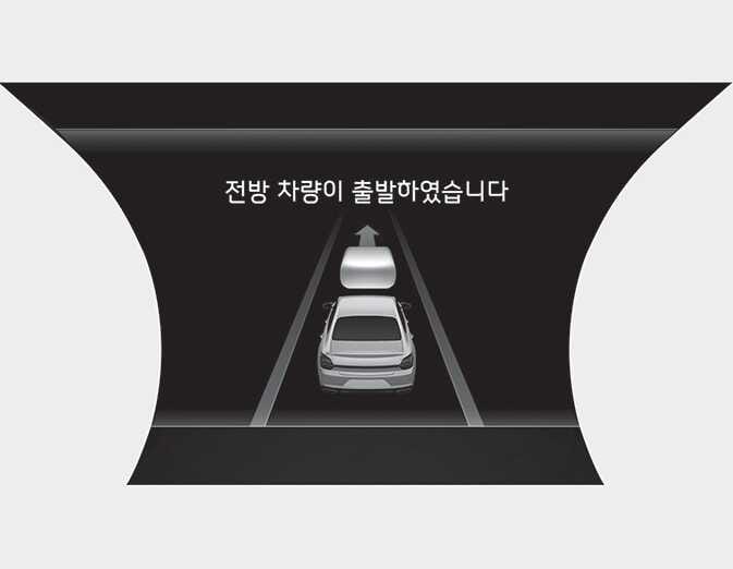정차 중에 앞 차량이 출발하면 알림 문구가 표시되고 알림음이 울립니다.