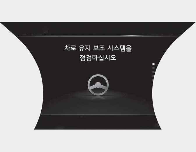 기능 이상 ORJ041215 차로 유지 보조에 이상이 있으면 계기판에 경고문이 일정시간 표시되며 통합 경고등 ( )이 켜집니다. 자사 직영 서비스센터나 서비스협력사에서 점검을 받으십시오.