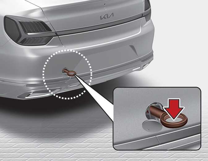 주의차량 다른 부위에 연결하여 견인할 경우 차체 손상 및 변형의 우려가 있으므로 반드시 차량 후방의 견인 후크에 연결하십시오.