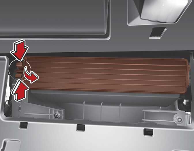 공조 장치용 에어필터 커버의 왼쪽을 누른 상태에서 잡아 당겨 커버를 분리하십시오.