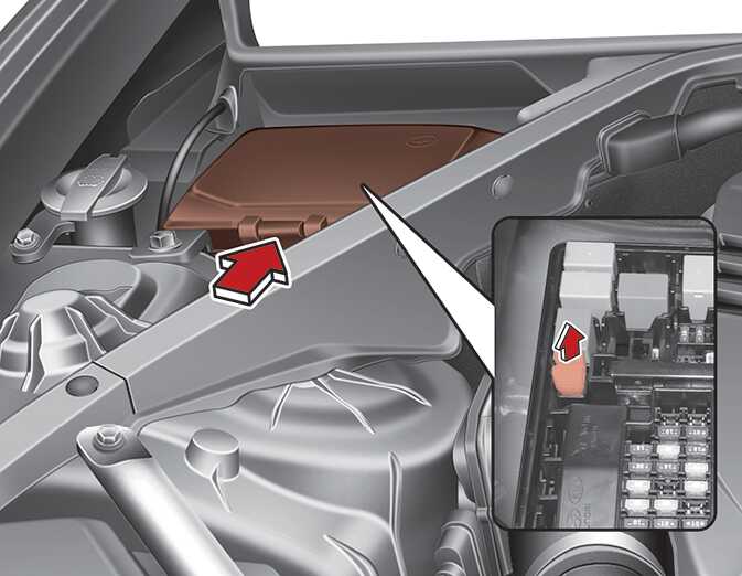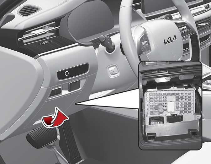 시동 「OFF」 상태에서 모든 전기장치 스위치를 끈 후, 엔진룸 내 퓨즈/릴레이 패널에 있는 퓨즈 교체용 클립(퓨즈 뽑개)으로 끊어진 퓨즈를 제거하고 같은 용량의 예비 퓨즈를 손으로 단단히 삽입하십시오.