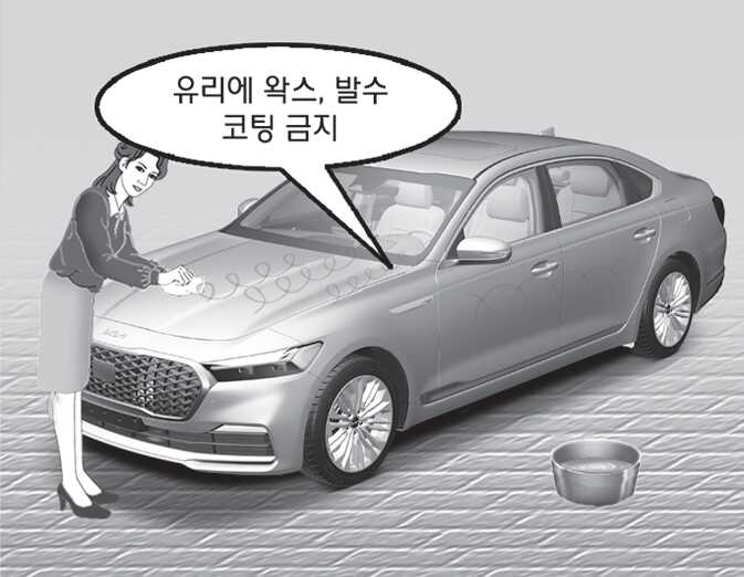 앞유리에 왁스가 묻으면 와이퍼의 손상원인이 될 수 있으므로 주의 하십시오.