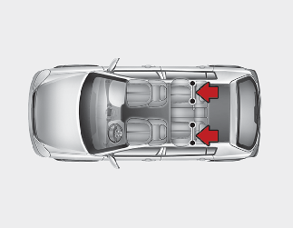 Mocowania ISOFIX znajdują się tylko na zewnętrznych siedzeniach tylnych (lewym i prawym). Ich rozmieszczenie przedstawione jest na ilustracji.