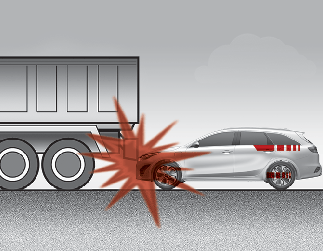 Tuż przed zderzeniem kierowca często gwałtownie hamuje. Tak nagłe i silne hamowanie powoduje obniżenie przedniej części pojazdu, który dosłownie wjeżdża pod pojazd o wyższym prześwicie. W przypadku takiego zderzenia z wjazdem pod inny pojazd poduszki mogą się nie napełnić, ponieważ wykrywane przez czujniki siły hamujące zostają znacznie osłabione podczas tego swoistego wjazdu.