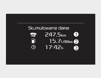 W przypadku otwarcia drzwi kierowcy po wyłączeniu silnika lub po upływie 3 minut od jego ponownego uruchomienia, informacje o jeździe zostaną wyzerowane.