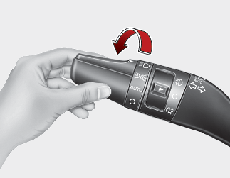 Przestawiając pokrętło na końcu dźwigni sterującej do jednego z poniższych położeń, można kontrolować ustawienia świateł: