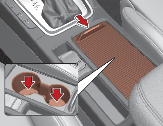 Kubki bądź małe puszki można umieszczać w uchwytach na kubki.
