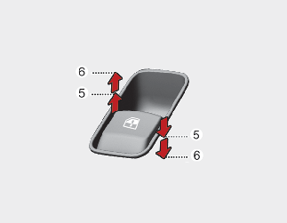 Krótkie naciśnięcie lub pociągnięcie przełącznika okna elektrycznego do pozycji drugiego zatrzymania (6) spowoduje całkowite opuszczenie lub podniesienie szyby, nawet jeżeli przełącznik zostanie zwolniony.