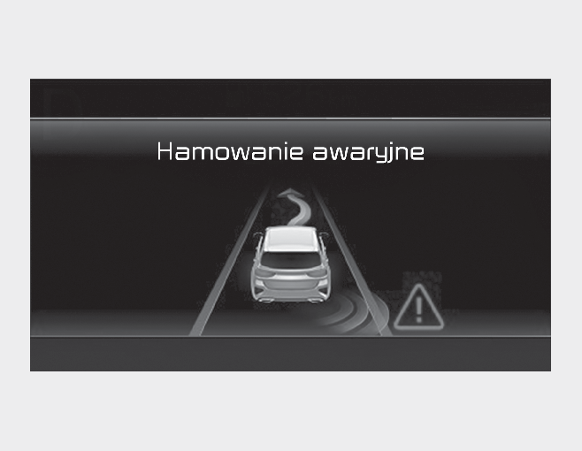 Po zatrzymaniu pojazdu w wyniku hamowania awaryjnego w zestawie wskaźników zostanie wyświetlony komunikat ostrzegawczy „Drive carefully” (Jedź ostrożnie).