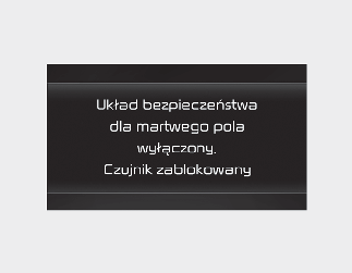 W takiej sytuacji w zestawie wskaźników zostanie wyświetlony komunikat ostrzegawczy „Blind-Spot Safety system disabled. Radar blocked” (System monitorowania martwego pola wyłączony. Radar zasłonięty).