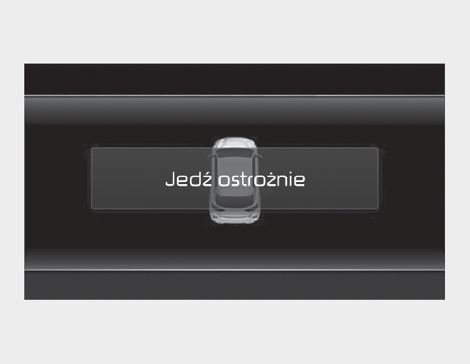 Po zatrzymaniu pojazdu w wyniku hamowania awaryjnego w zestawie wskaźników zostanie wyświetlony komunikat ostrzegawczy „Drive carefully” (Jedź ostrożnie).