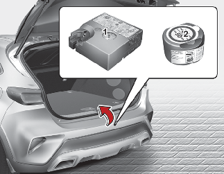 Zestaw do naprawy opon służy do wykonania tymczasowej naprawy opony. Po takiej naprawie należy jak najszybciej sprawdzić pojazd w profesjonalnym zakładzie. Kia zaleca, aby udać się do autoryzowanego dealera/partnera serwisowego marki Kia.