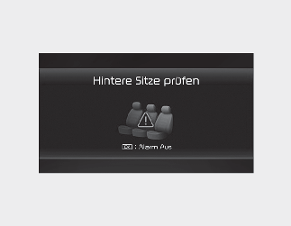 Wenn Sie die vordere Tür nach Öffnen und Schließen der hinteren Tür öffnen und den Motor ausstellen, erscheint die Warnmeldung „Check rear seats“ (Rücksitze prüfen) auf dem Kombiinstrument.