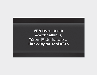 Wenn Sie mit betätigtem Gaspedal losfahren wollen und die EPB aktiviert ist, aber diese nicht automatisch gelöst wird, ertönt ein Warnsignal und es erscheint eine Warnmeldung.