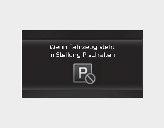 Diese Meldung wird auf dem LCD-Display angezeigt, wenn der Wahlhebel in Position P (Parkstufe) gebracht wird und sich das Fahrzeug noch bewegt.