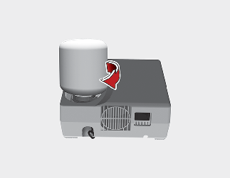 Trennen Sie den Dichtmittelzufuhrschlauch von der Dichtmittelflasche und vom Reifenventil. Lassen Sie die Dichtmittelflasche und den Kompressor nach der Verwendung aneinander befestigt.